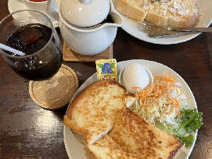 信じられないくらいパンが美味しい。 厚焼きトーストが必食の一品。