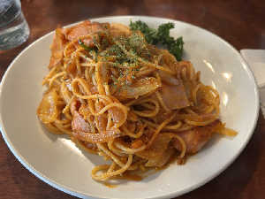 建物の目の前にある雰囲気のあるカフェ。お腹が空いていたのでそのまま吸い込まれてしまった。