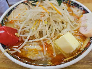 バター入りラーメン何十年振り?🥢旨し。ここではマストなのか皆さん注文。野菜に唐辛子振りかけ結局完飲