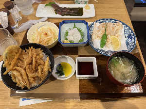 ザ・富山の晩ごはん!ディナータイムなのに1,200円て凄すぎる。米と具沢山みそ汁が激ウマ⭐︎