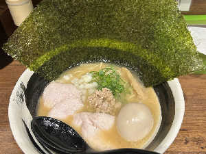 ツルツル麺に濃厚な鶏白湯が絡んで美味。奥久慈卵の卵や浅草の老舗の海苔などが使われたこだわりの一品
