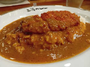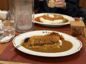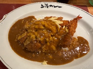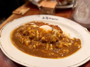 旨辛いカツカレーにチーズをトッピング。チーズが溶けるのが最高