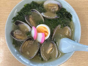 あさりラーメン、青のりラーメンとシーフードカレーの有名店 あさり、イカ、エビ、ホタテがたくさん