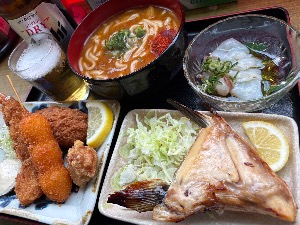 揚げ物、刺身、小鉢も充実。ガッツリ飲み散らかしたいお店。