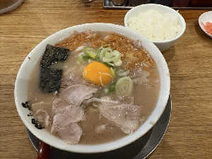 まろやか豚骨ラーメン、 Big海苔をひたしていただく😋 焼ホルモン+ご飯のBセット、替玉(カタ1)🙏
