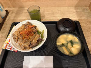 サウナ前に。ボリュームMAX朝ごはん。二日酔いにはたんぱく質と糖質が効く。トイレ借りたかっただけ笑