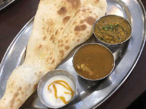 ほうれん草と豆カレーとチーズナン