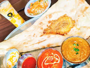 バターチキン+日替り(豆&チキンカレー) デザート+サラダ+ハーフナン 濃厚♡マンゴーラッシー必須🥰