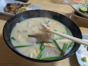 白味噌仕立て ちょっと多いかな と思ったがペロリ お腹いっぱいになって満足😆