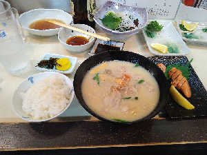 甘めの白味噌で仕立てたクリーミーな、ぶた汁が美味すぎる!他のおかずも美味かったー!