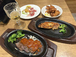 薄カツ、ビール🍺、ハシゴでバーミヤンで新年会コース、120分ビール🍺飲み放題、料理は全て持ち帰りです