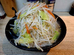 モヤシがもっさりで麺はそんなに多くはなくちょうどいいくらいです