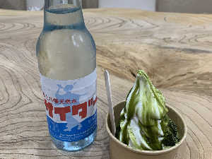サイダーは水の綺麗さと炭酸の強さがいい塩梅。ソフトは抹茶ソースが濃ゆい!