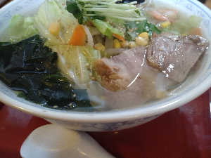 会津山塩の美味しい塩ラーメン。野菜のボリュームで朝ウナ後のペコペコが満たされる♡