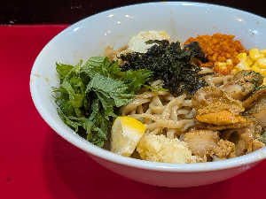 野菜、アブラ、ニンニク少なめ 玉ねぎ、チーズ、チャーシュートッピング
