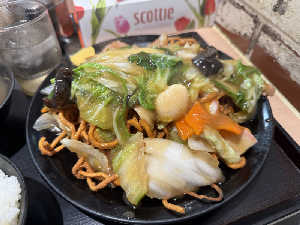 町中華。ご飯の量が信じられないくらい多い。さらに大盛無料、友達は頼んでた。これ一食で満足できる。
