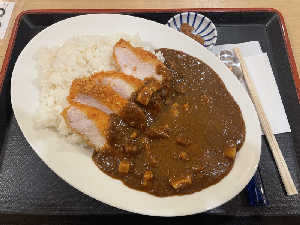 湯〜ねる施設と繋がってるとんかつ屋さん。外側から。持ち合わせ的に支払いを別にしたかった。