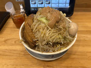 麺の旨さがたまらない、追い刻みニンニクは欠かせない。