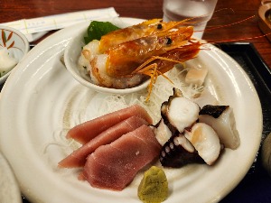 マグロ・タコのぶつ切り・赤海老 +納豆+🍚おかわり