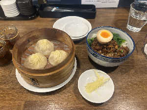 サ飯チケットで小籠包。 魯肉飯(写真、食べかけごめん)も頼んだけど、どちらも台湾のリアルな味で最高。
