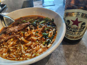 台湾で食べた牛肉麺のクオリティ。 一度ご賞味あれ。 安定のサッポロの赤星。間違いない。