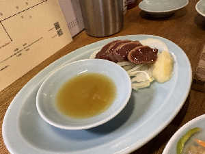 レバテキは焼き石で軽く焼き色をつけて食べる。美味しくて楽しい!