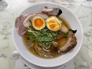 オイリー、タレ薄め、細麺、肉々しい叉焼。鶏出汁を強く感じる( ´ー`)y-~~