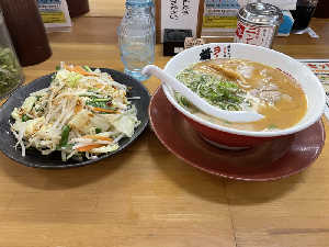 二度目の横綱🍜美味しい🤤餃子と米の代わりに野菜盛り追加