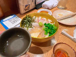 のどぐろの塩辛や焼き物を肴に飲みつつ 〆にのどぐろ飯とあら汁を😁