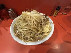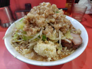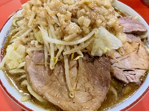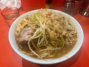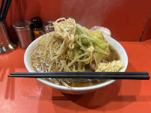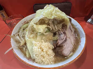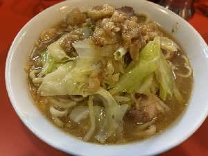 少なめの食券初めて見たかも!野菜がキャベツオンリーなのも初。デロ中太麺で個人的には変化球だった🍜