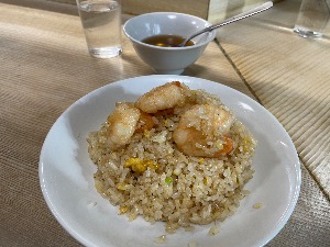 水気飛んでるパラパラの炒飯で新たな食感で旨い。海老もぷりぷりで良い。