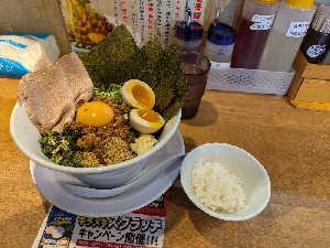 アブラニンニク増し、台湾ミンチトッピング、餃子セット。