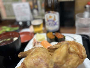 外はパリパリ、中はジューシーな半身揚げを手でむしりながら食べるのが旨い!
