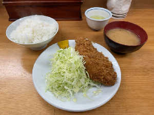 キャベツの千切り、ソースが美味しくて、ペロリと。 そして、メインのロースは脂は甘く適度肉肉しいい。