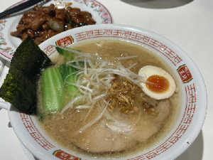 醤油豚骨と魚介のだしが最高に美味かった。あと、ホルモンの味噌炒めも頼んだ。うまかった!