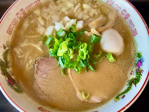 煮干し香る甘味のあるスープは背脂たっぷりの見た目と違いあっさりで味わい深くウマいね😍
