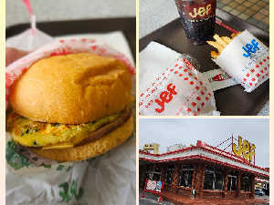 沖縄へ来たら必ずJefで食べます‼️ オリジナルのぬ〜やるバーガー🍔&オレンジジュース🥤がオススメ🙌