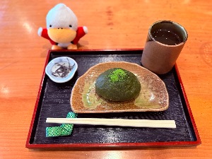 期間限定のよもぎ餡のおはぎとアイスコーヒー☕️味が薄くならないように氷はコーヒーで出来ていました🧊✨