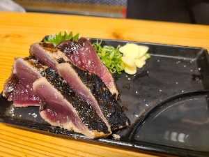 知ってるカツオじゃない、全く臭みなし。 厚切りで藁焼きなのも本場のスタイル。 最高でした。