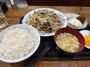 2回目の訪問 前回は生姜焼き食べたので 今日は一押しの肉味噌ラーメンにサービスライス50円追加