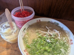 店に入った瞬間から、豚骨の香りがものすごい!しかし食べてみると匂いはそんなに感じず、むしろあっさり
