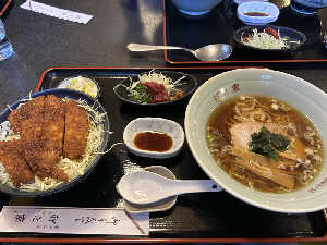 たまたま入ったがお店だけど大正解! ソースカツ丼、喜多方ラーメン、馬刺しのセット。 全部うまい!最高