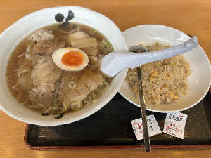 ラーメンは小サイズ。海老半チャーハン(480円)も付けちゃった!🦐