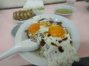 今治のB級グルメ。甘めのタレとトローリ黄身でご飯が進む。