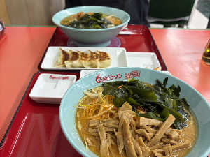 くるまやラーメン来たら、いつもの 味噌チャーシュー🍜 半ライス🍚無料❌で50円に