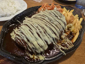 初めて食べたけど粗挽きハンバーグが肉々しくて美味しい!