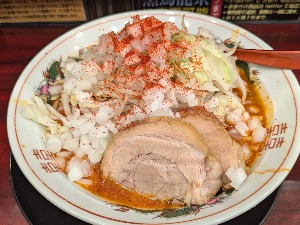 野菜マシ、脂普通。この感じのラー油っぽい辛みはないほうが好きだった。それ抜きでも、、、かな。