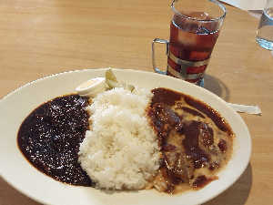 酸っぱ辛い国立名物カレー、アイスコーヒーと共に。