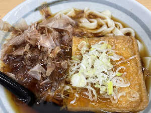 駅そばのきしめん。 つるつるでおいしい。サウナ後の塩分補給にぴったり! 朝から晩まで営業ありがとう。