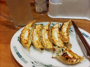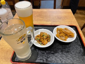 改装工事が終わった日高屋。ビールと餃子をお供に。